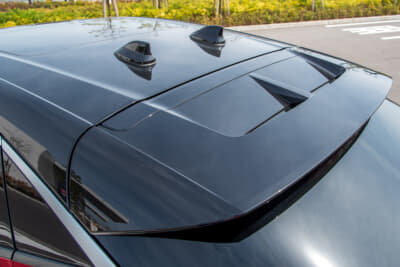 実際にアリアを目の前にすると、全長4595mmという「エクストレイル」よりも95mm短いボディながらも、なかなかのボリューム感がある。フォルムとしては最近流行のクーペSUVとでもいうべきものだが、新しい日産のデザイン表現となりそうなシンプルな面構成で、日産が言う新時代のフラッグシップとしての品格はそれなりに感じさせる。