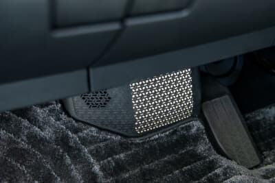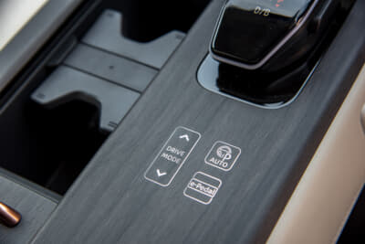 というのも、それが気になったのはアリアの走りにおいて、このドライブモード選択が、走りの特性を大きく変える、あるいは変えられることになるからだ。日産といえばeペダルであるが、アリアのアクセルオフの際の減速度は、eペダル「オン」では、どのモードでも変わらない。一方でeペダルを「オフ」にすると、各モードでアクセルオフの際の減速度は変わるため、パドルシフトのようにモードを変えて減速度を意図的に変化させたいと思ったのだが、このスイッチ配置・形状では、どうにも正確かつ即座には操作できなかった。