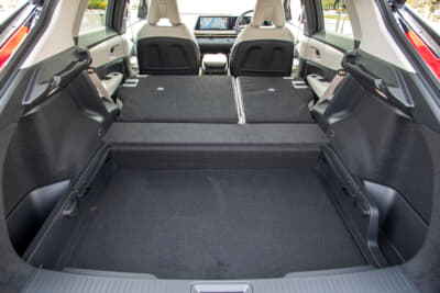 特徴的なのは、「エコモード」でかつeペダルを「オフ」にした際の「コースティング」(空走・滑走)。減速回生をいわばゼロにしているということだが、この際の速度の落ちの少ないこと少ないこと。平坦路なら、アクセルペダルを戻しても、スーとなめらかに、ひたすらに惰行を続ける感覚で、いかにも空気抵抗もタイヤや駆動系の抵抗も少なさそうだと感じさせるほど。