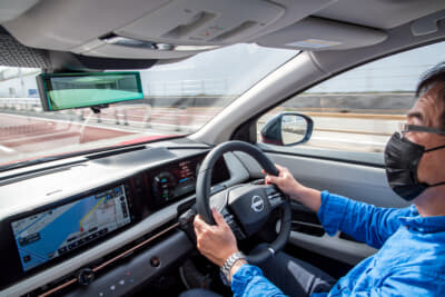 とくに高速巡航域の流れのなかでは、減速回生をするよりも、アクセルを少し戻しながらも速度を維持できたほうが効率がよいことは往々にしてあるもので、そこはこれまでのeペダル採用車の気になるところでもあったのだが、アリアでは気持ちよいくらいに速度落ちが小さいままに維持されるのだった。