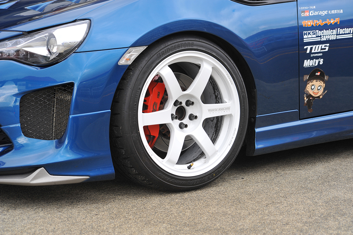 さらに低いのがドリフト競技車両。タイヤが冷えた状態からいきなりドリフトするため、走行直後から少しでも接地面積でグリップを稼ぎたいという狙いから空気圧が極端に低い。最近ではタイヤが冷えている冷間状態で、1.0kg/cm2を下まわるほどの状態でスタート。しかし、あまりの空気圧の低さにタイヤがリムから外れてしまう「リム落ち」が頻発。それがクラッシュに繋がり、空気圧を下げすぎないように指導されるほどなのだ。