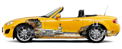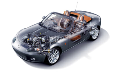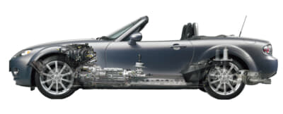 RX-8と同系統のシャシーは、ダブルウイッシュボーン/マルチリンク式サスペンションでしなやかに動く。エンジンは決してパワフルではないが、2000ccなりのトルクはあるのでハイグリップタイヤを履かなければパワーオーバーステアに持ち込むことも可能。となると、カウンターステアを当てるシチュエーションも現れやすく、ドライビングスキルを磨くのに適しているのだ。