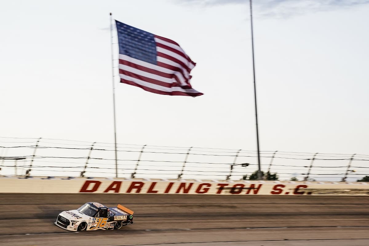 5月6日(金)、そのトラックシリーズ7戦目となる「Dead on Tools 200」がサウスカロライナ州にあるダーリントン・レースウェイで開催となった。ターン1-2と3-4の曲率、バンク角ともに異なる独特のレイアウトを持つ、1周1.366マイル(2186m)のオーバルコースで争われることとなる。3ステージ制で行われるレースは、第1ステージが45周、第2ステージは90周でチェッカーが出され、残り57周の合計147周(今回は最終的にオーバータイムで149周となった)で行われる。予選から決勝の合間に雨が降った影響で、レーススタートの合図となるグリーンフラッグは、午後8時に振られることとなった。