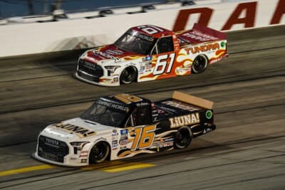 HREの「#16 LiUNA Toyota Tundra」に乗るタイラー・アンクラム選手は、金曜日の午後の予選で12番手のグリッドを獲得し、6列目アウト側からレースをスタートすることに。その走り出しの状態はあまりよくなく、この日2度目のイエローコーションとなった20周目にピット作業を行って新品タイヤを装着。25周目に27番手からリスタートしたあと、16位まで順位を上げて45周目の第1ステージを終えた。
