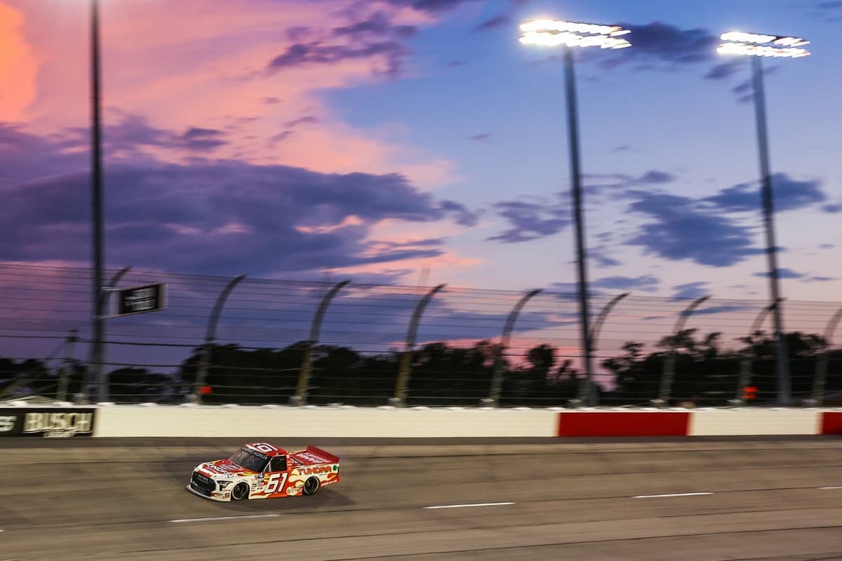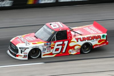 一方、「#61 BAMA BUGGIES TOYOTA TUNDRA」に乗るチェイス・パーディ選手は、予選で22番手のグリッドを獲得。スタートからポジションを徐々に上げていき、20周目のイエローコーションで給油&タイヤ交換のためいったんは順位を24番手まで落とすものの、その後もプッシュを続ける。第1ステージを18位で終え、その後のステージブレイクでも迅速なピットワークで、8ポジションアップを達成。