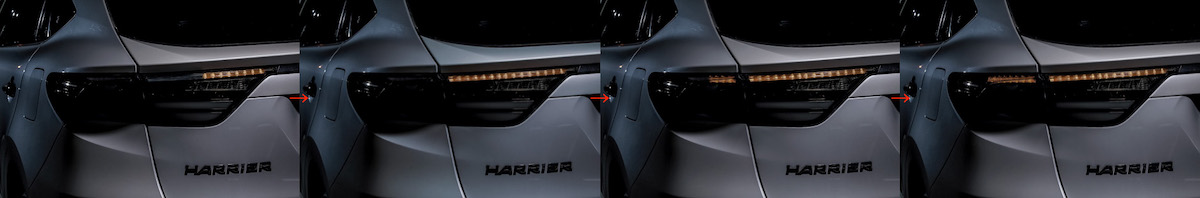 鮮やかなイルミネーションで斬新なリヤビューを描き出すヴァレンティの「ジュエルLEDテールランプ・ウルトラ」に60ハリアー用が新たに加わった。その最大のアピールポイントは、リモコンを使用してドアのロック/アンロック時にテールランプがモーション点灯するオープニング&エンディングアクションだ。L字ライトバーとウインカー部が躍動的に順次点灯(エンディング時は消灯)して、テールランプの存在感を一層強めている。またウインカー部はシーケンシャルと点滅モードの選択が可能だ。