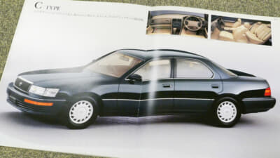 このクルマのカタログも当然ながら“上等”な仕立てで、全58ページの平綴じとし、表紙は黒地にシルバーのロゴだけを配したデザイン。開くと1ページ目には、この初代セルシオから採用されたトヨタのロゴマークの説明があり、さらに次のページで現れるのが“この車から、クルマが変わります。”のコピーだった。