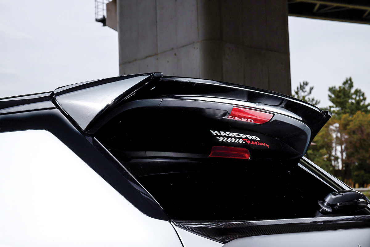 ボディラインに合わせたゲートウイングは小型タイプで、スマートにボリュームアップを図る。表面はマジカルアートシートNEOを貼付けた。