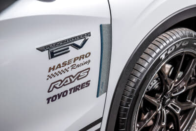 まずは写真をご覧頂こう。このクルマが国産車に見えるだろうか? それとも欧州車に見えるだろうか? この存在感、オーラは日本車のそれとは大きく違うように感じる。早速答えを明かすと、ベース車両は三菱のアウトランダーPHEV、コーディネイトしたのはハセ・プロだ。