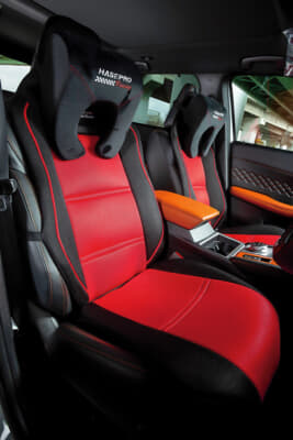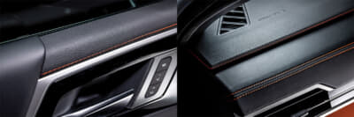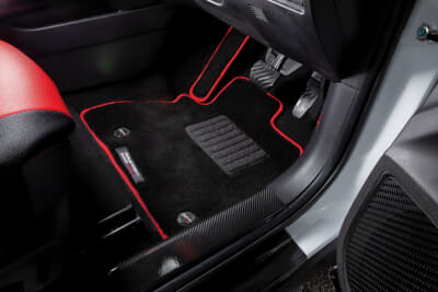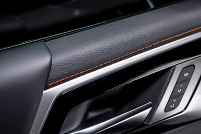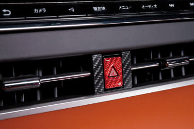 そこで、新型アウトランダー用に専用開発した同社のスポーティなエアロパーツを皮切りに、リアルカーボンアイテムやウッドシート、シングルステッチシート、スイッチガーニッシュなど、同社の技術を象徴する良質なアイテムを各所にセット。その完成度たるや、まるで純正からもともとそうであったかのような高いクオリティを誇る。上質になった新型アウトランダーPHEVをさらにプレミアムなムードに導いているのだ。その底上げ感ゆえに、結果、欧州車にも引けを取らない個性と存在感を獲得している。リアル系貼付けシートの底知れぬポテンシャル、見事のひとことに尽きる。