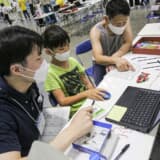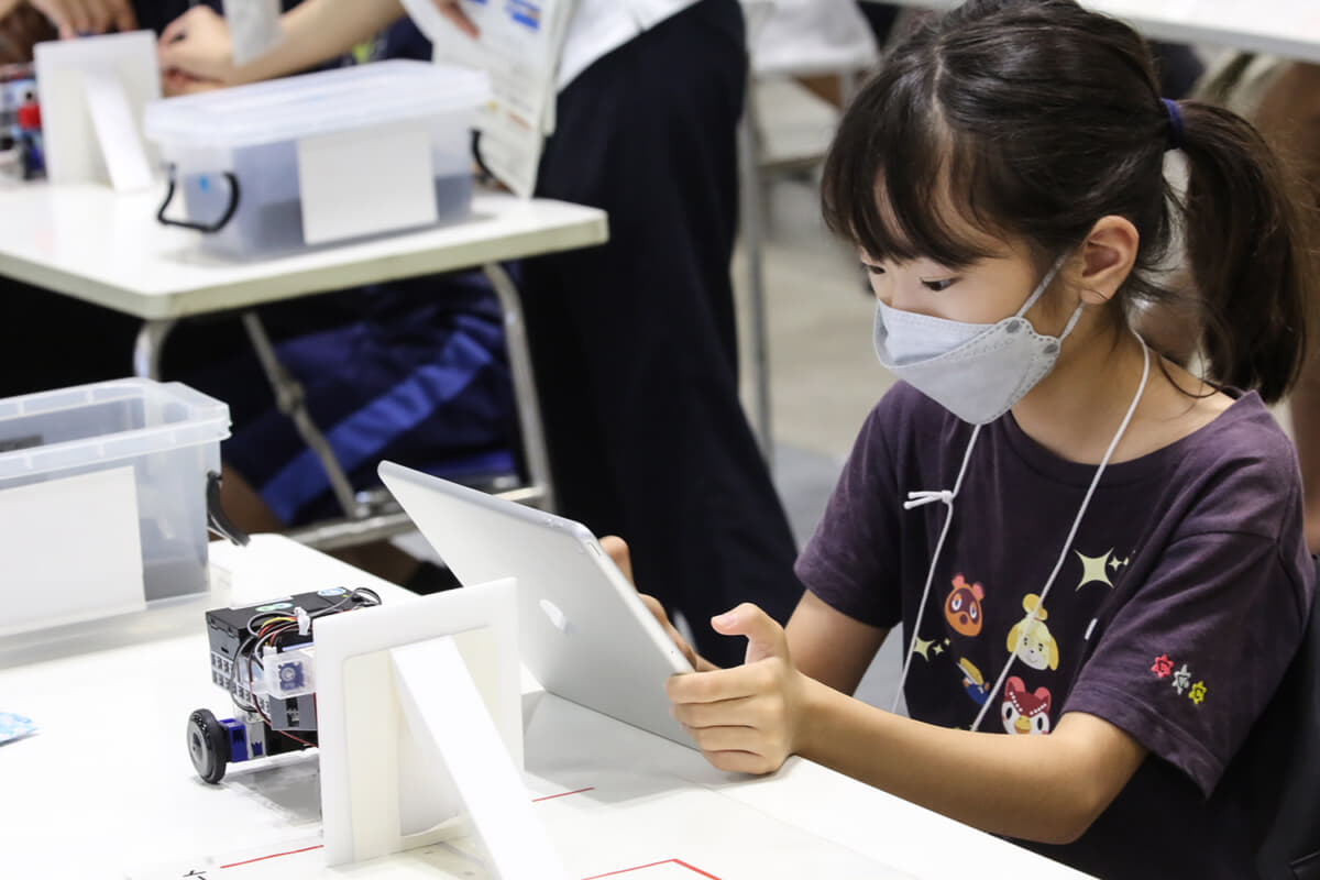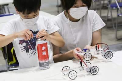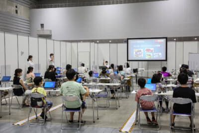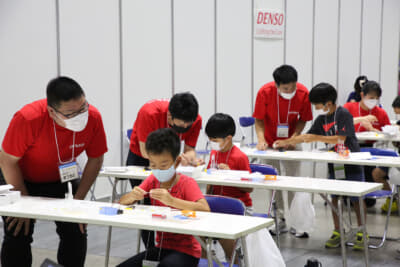 会場に入ってみると、応募に当選し全国から訪れた小学生とその保護者しか入場できないので、コロナ禍に対応したソーシャルディスタンスが保たれていて混雑した印象を受けない。体験型プログラムもひとりひとりにきちんと丁寧に教えられるような体制が整っていて、子供たちが理解を深めている様子が見られた。