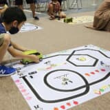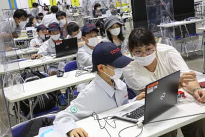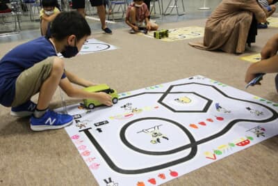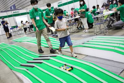トヨタでは自動運転のミニカー作りを通して、障害物にぶつからないようにゴールするという課題にチャレンジ。子供たちは何度もパソコンとコースを行き交い、最適解を追究していた。ダイハツはミニカーを使用しマップの上を走らせる技術、日産はロボットカーを用いて最新技術や仕組み、日立astemoはラインに沿って自動で動くクルマを作るという内容だ。