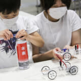 また、自動車技術会関東支部ブースでも、レゴキットカーを組み立てて、クルマの仕組みやプログラミングを学ぶ内容であった。さらにクルマに使われているファンをモチーフにかざぐるまの工作を体験する展示型プログラムも行っていた。どのブースでも実際に思い通りにミニカーを動かせたときの達成感は格別で、子供たちも見まもる保護者も共に喜んでいる場面が多く見受けられた。
