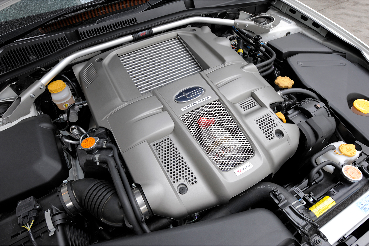 2.5Lエンジンをベースとし、等長等爆エキゾーストシステムにツインスクロールターボというメカニズムは当時S402だけの専用メカニズム。4代目レガシィシリーズで最高峰とされる最高出力210kW(285ps)/5600rpm、最大トルク392Nm(40.0kg-m)/2000〜4800rpmという圧倒的なパフォーマンスも見逃せないスペックを誇った。