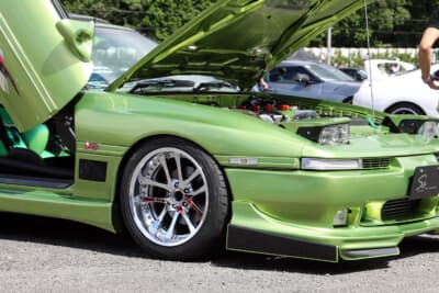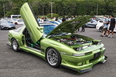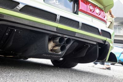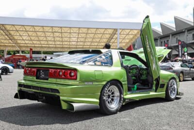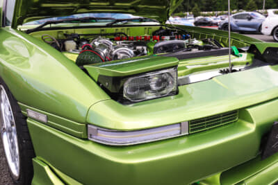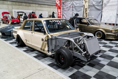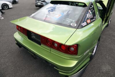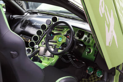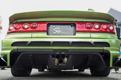 また、サイドステップとカナードはボメックス製で、テールはドラッグスタイルを強調させるために鉄板でエンド部分を延長させたワンオフウイングがシンプルでカッコ良い。テールはIPF丸テール仕様にしているのが印象的だ。