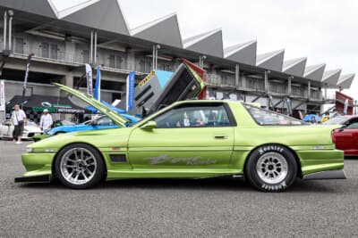 70スープラらしさを崩さないスタイルは、オーナーの愛情というべきモディファイにある。フロントスポイラーは純正改としながら、スープラオーナーズクラブが作ったリップスポイラーを装着。そこに、アブフラッグの汎用デュフューザーを組み合わせている。