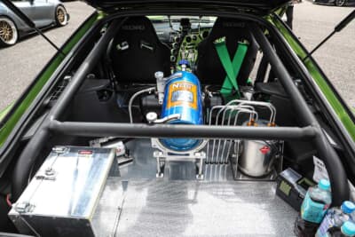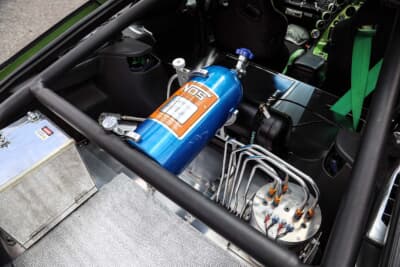 さらにこのクルマはNOSも搭載。ここぞというタイミングでNOSを全噴射させると、そのパワーはブースト圧1.6kg/cm2時に実測で867psをマークするというから、その加速たるや……。