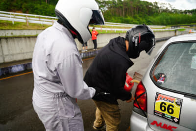 ドライバーのなかには普段クルマを運転しない人もおり、事前にレースが行われるリンクサーキットへ通って練習。速く走るためのテクニックだけじゃなく、マナーやルールも全員に覚えてもらったという。その甲斐があって当日の公式予選は3番手で1分7秒910をマークし、学生クラスのトップが1分7秒729なので上々といえるだろう。