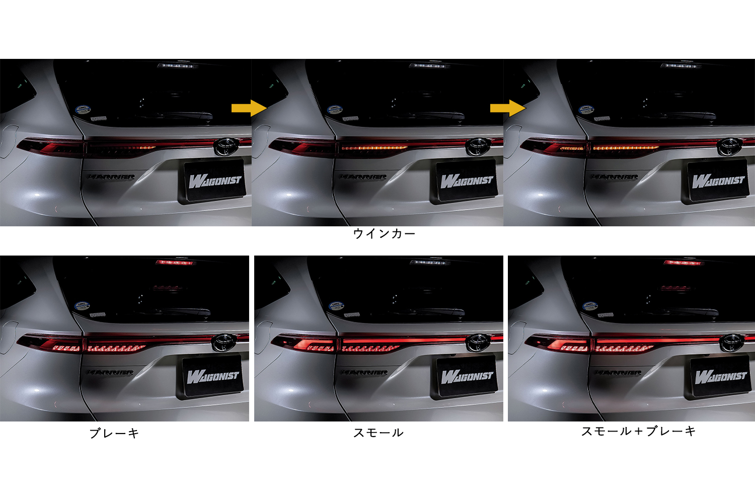 80ハリアー用テールはアッパーとロアとで構成される。アッパーには後ろ姿を真一文字に切り裂くライトバーと、3D感絶大な縦フィンとのコンビ仕様となる。アッパーの両端は、ボディ側面までライトバーがまわり込んだ形状で、さらに側面には2発のLEDも搭載されており、USテイストかつ被視認性も絶大だ。