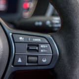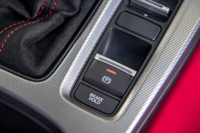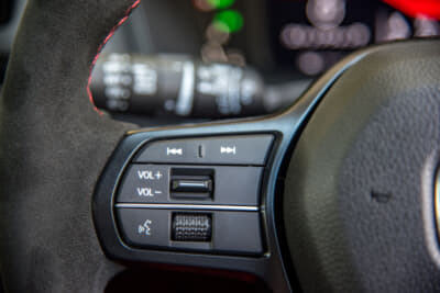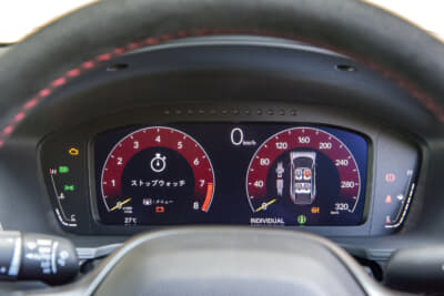 排気をになうマフラーの方はといえば、センターに太いエキゾーストと両サイドにやや細めの2本のエキゾーストを配置した3本出し。アクティブ・エキゾースト機構が回転数に応じて開度をチューニングし、さらにその音をアクティブサウンドコントロールが室内にも伝えて、レーシーな雰囲気を高めている。