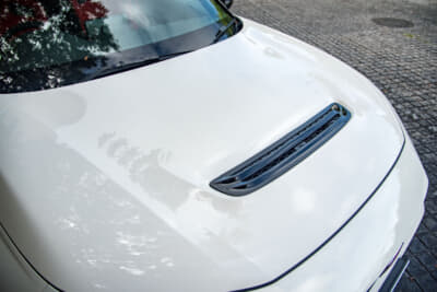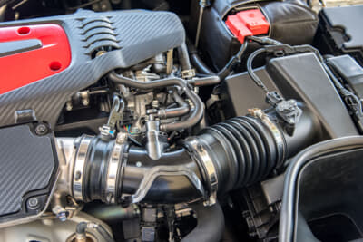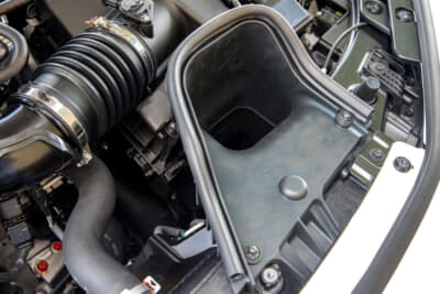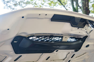 吸気はダイレクトに外気が取り込めるようになっている。タービンの熱はそのままボンネットのダクトからダイレクトに排出できるようになっており、タービンやエンジンルーム内の温度抑制にも役立ちそうだ。