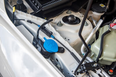 ちなみにウインドウウォッシャータンクは、メインフレームとフェンダーのわずかな隙間に収納されている。それほどまでに、エンジンやタービンの位置にこだわったという証左である。