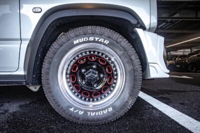 また、納車時より変更なく装着しているホイールが、「WORK CRAG GALVATRE(ワーク・クラッグ・ガルバトレ)」の16インチ。こちらも3ピース構造の高級ホイールで、リムやインセットなどのサイズラインアップは豊富だ。ディスクカラーも設定色だけではなく、オプション設定があり、多彩な色から選べる「カラリズム」に対応している。シエラのワイドフェンダーでも、ワイドトレッドスペーサーなど付けずとも、ホイールのみでツラまで寄せることができる。
