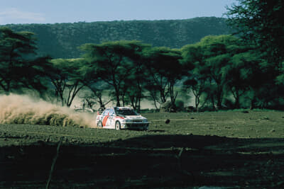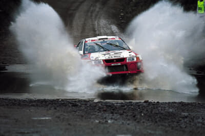 市販のエボIVはこれまでと同じ「4G63型」エンジンですが、ラリーカーでは搭載方向を逆転させて吸排気効率を高め、パワーも280psに到達。WRCではマキネンが4勝を挙げて連覇し、ドライバーチャンピオンの座を守っています。