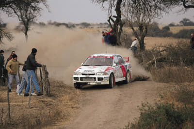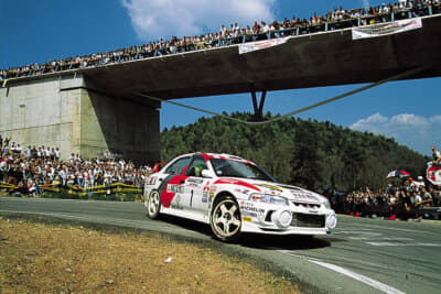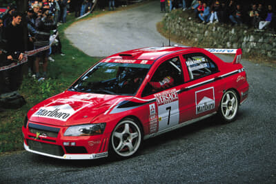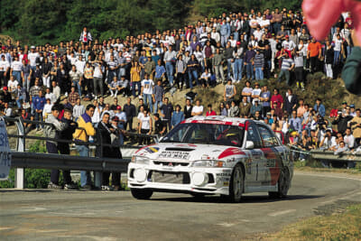とはいえ形勢は改造自由度の高いWRカーに傾いてゆきます。1998年1月、ランサーはWRカーで認められているトレッド幅までワイドトレッド化したエボVを市販。ターマック(舗装)路での戦闘力をアップさせたエボVを、第5戦カタルーニャに投入します。マキネンは3位に食らいつき、その後のトヨタのカルロス・サインツとの僅差による壮絶なドライバーズタイトル争いを、最後まで繰り広げることになったのでした。