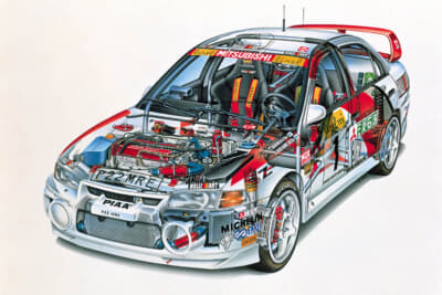 三菱が誇る名車は多数存在しますが、その代表格と言えるのは、やはり「ランエボ」の愛称で親しまれた「ランサーエボリューション」でしょう。前編では、ランエボの誕生から、エボIIまでを振り返りました。本稿では、さらに戦闘力を高めたエボIIIから、参戦終了となる最後のマシン、ランサーエボリューションWRCまでを振り返ります。
