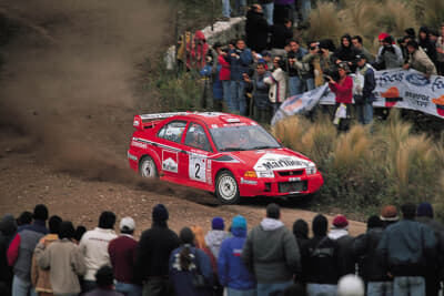 こうして熟成を遂げていったランサーで三菱ワークスチームは、1996年にはトミ・マキネンのシリーズ全戦参戦を組みます。マキネンは開幕戦のスウェディッシュ、次戦のサファリ・ラリーと連勝。シリーズ半ばからもアルゼンチン、1000湖、オーストラリアの3連勝と怒涛のような快進撃を続け、自身初のドライバーズタイトルを獲得します。三菱にとってもエボIIIは、世界タイトル獲得をもたらした初のクルマとなったのです。