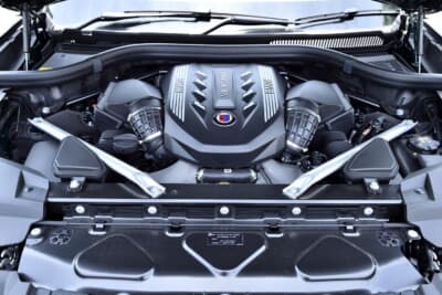 アルピナの「肝」であるエンジンは、X7の最高性能版である「M50i」と同じく4.4L V型8気筒ガソリンターボながら、M50iの530psから91psアップにあたる621ps(457Kw)/5500-6500rpmをマーク。トルクも800Nm/2000-5000rpmという、現在においても驚くべき数値を得ている。