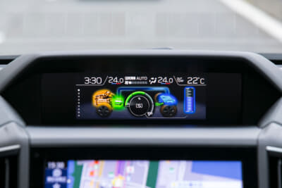 シンメトリカルAWDの走破性をさらに高める制御システムとして「X-MODE」が備わります。このシステムはエンジン/トランスミッション/AWD/VDCを統合制御し、4輪の駆動力やブレーキなどを適切にコントロールすることで、雪道やぬかるみにはまってタイヤが空転してしまい、脱出が困難なときに制御が介入。スムースに脱出することを可能にしてくれます。
