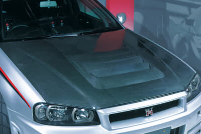 まず炭素繊維の複合素材であるカーボンは、大きく分けてウェットとドライのふたつがある。市販車用のチューニングパーツはおもにウェットカーボンという、炭素繊維をプラスチック樹脂で固めた素材を使っており、重量や強度はFRPと同等で炭素繊維の分だけ価格は少し高め。それでも鉄製の純正ボンネットと比べれば軽さは半分くらいであり、大半はカーボン地が見えるクリア塗装でドレスアップ効果も高い。