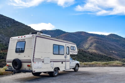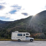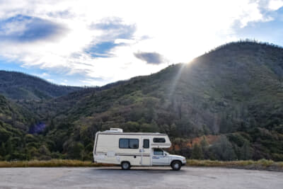 ケーンビルのキャンプ場を早朝に出て15分もしないうちに、ぼくとキャンピングカーの「ドル」には意外な展開が待っていた。なんと、急勾配、上り坂の連続である。地図を見ただけでは分からなかったが、恐ろしい山越えだった。朝一から時速30マイル(約48km/h)でのノロノロ走行だ。早朝で交通量が少ないのか、もともとクルマが通らない道なのか、たった1台での挑戦が続く。