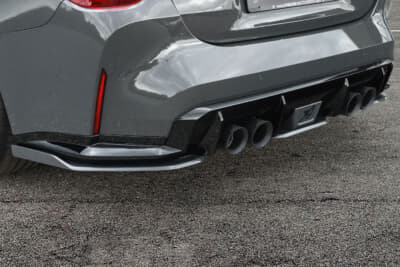 これらはボディカラーに完全にマッチさせることももちろん可能であるし、また好みによってはカスタマーの希望どおりの色にペイントすることもできる。リアのテールパイプもハーマンのオリジナル。それがどのようなBGMを奏でるのかは、実際にそれが装着されたM4コンペティションとの遭遇を待つほかはない。