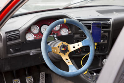 ラリーにM3で出場するわけではないのだが、その仕上げはレーシングカーのような感じとなっている。1987年モデルのM3は、リアシートを外した2名乗車となっていて、エアコンレス、パワステレスというスパルタンな仕様にされていた。正直、エアコンなし、パワステなしというM3は、普段遣いできるのだろうか。
