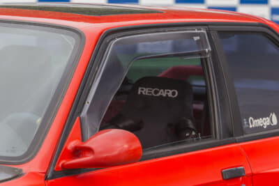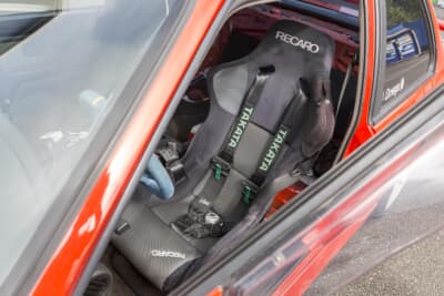 「エアコンのほうは窓を開けて我慢するしかないんですが、パワステは意外に大丈夫ですよ。実際には、いいや外しちゃえって、勢いでパワステレスにしたのですが、ステアリングのギア比とかが違う、いわゆる重ステラックに交換したら、存外問題なく乗ることができました。このクルマでのサーキット走行は年に3〜4回というところですが、クルマはこれしか持っていないので、この状態でなんにでも使っています」