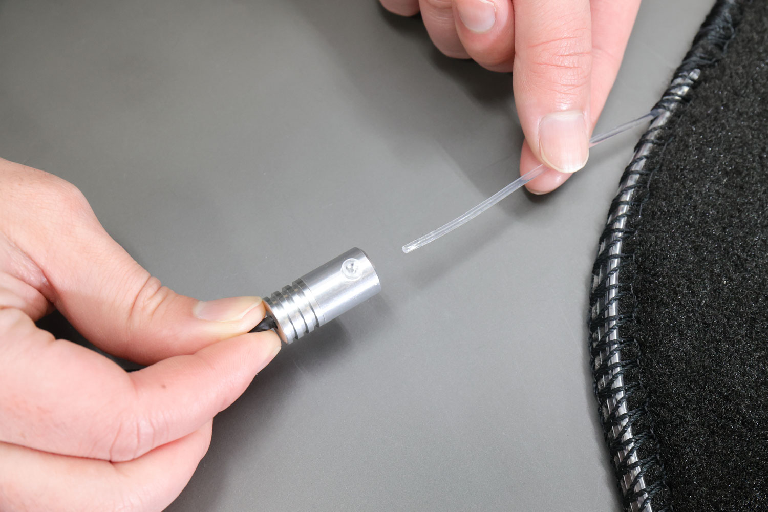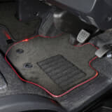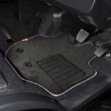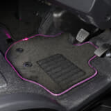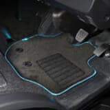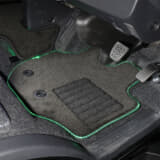 取り付け方法は、純正のフロアマットを外し、イルミネーションマットを運転席・センター・助手席に装着。運転席側のイルミネーションマットは、純正マット用のギボシに合わせて穴が開けられているので、簡単に取り付け可能である。