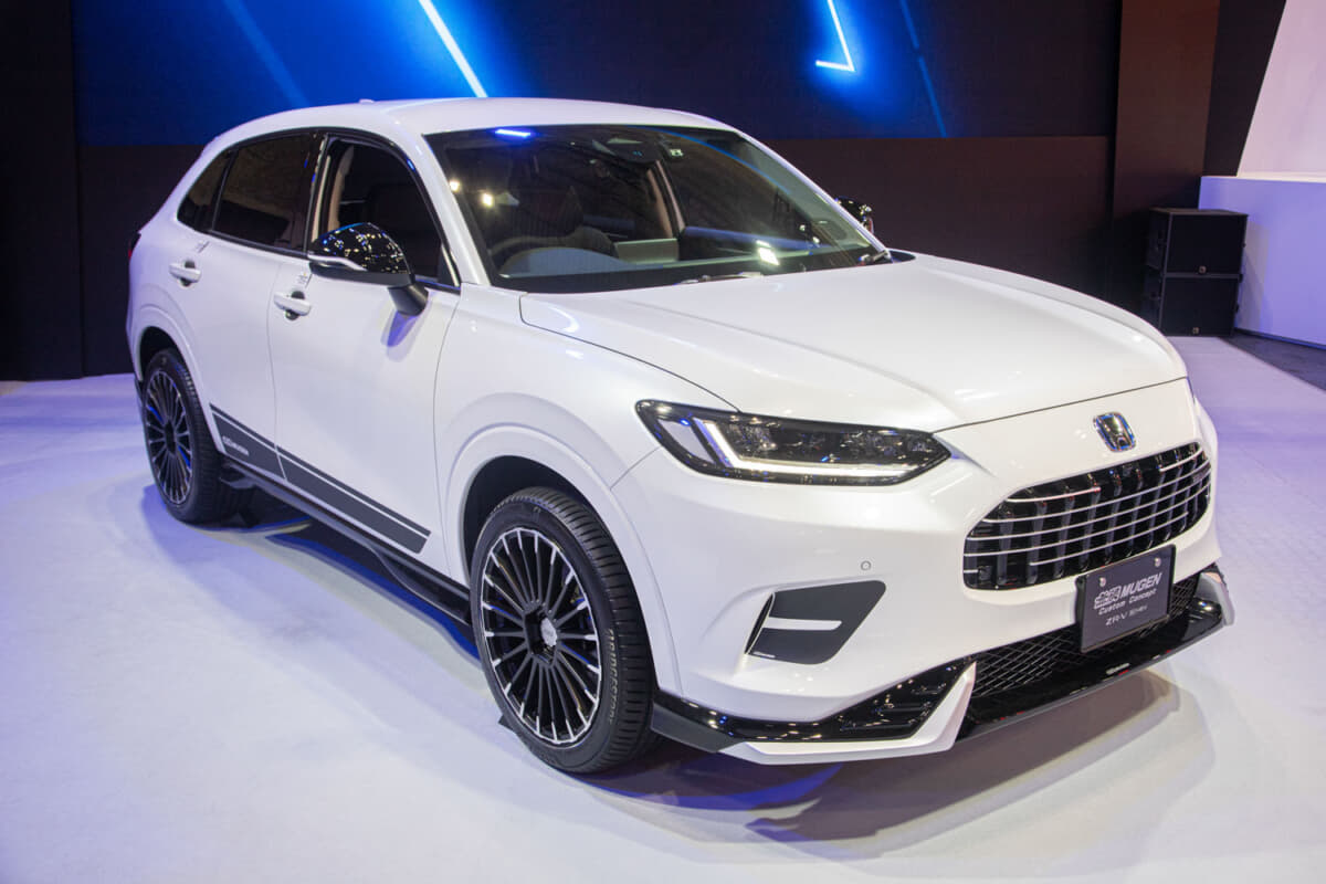 ホワイトのボディにグロスブラックのアイテムをプラスした無限ZR-Vは「Emotional Urban Sports」をコンセプトとしたものだ。