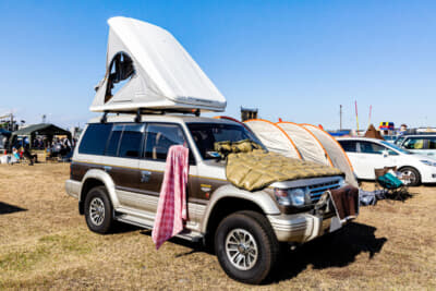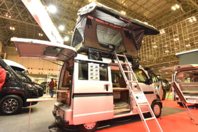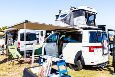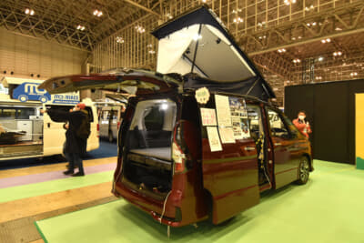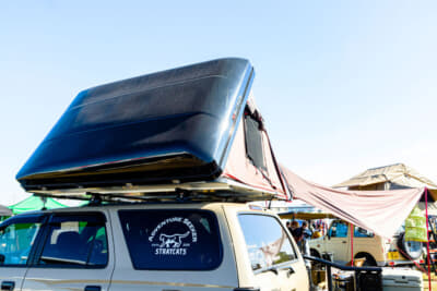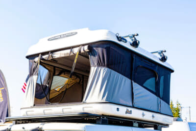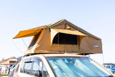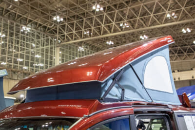 その特徴はミニバンならではのルーフの長さを活かし、ルーフ部分に折り畳み式のテントをポップアップさせることでルーフ部分がテントに早変わりするというもの。就寝スペースだけでなく即席のリビングルームとしても活用することも可能。現在ではキャンピングカーの架装ショップが後付けとして装着することが多く、装備するには屋根に穴を開ける勇気と高額な予算が必要になります。