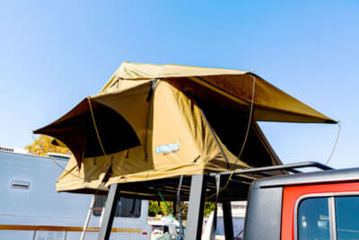 ちなみにシェル型とはABS樹脂などのシェルを開閉することでテントとして使用できるものを指し、テント型はその名の通り布製のテントで構成されます。タワー型はシェル型を縦に伸ばす4本の柱をもつ構造が特徴となり、なかにはダンパーを使い自動的に昇降できるものも存在します。価格的には平均して20万円前後と決して安くはありませんが、ペグ打ちやガイロープの設置、フライシートの追加などの必要がなく、簡単に設営/撤収できるのは大きなメリットといえるでしょう。