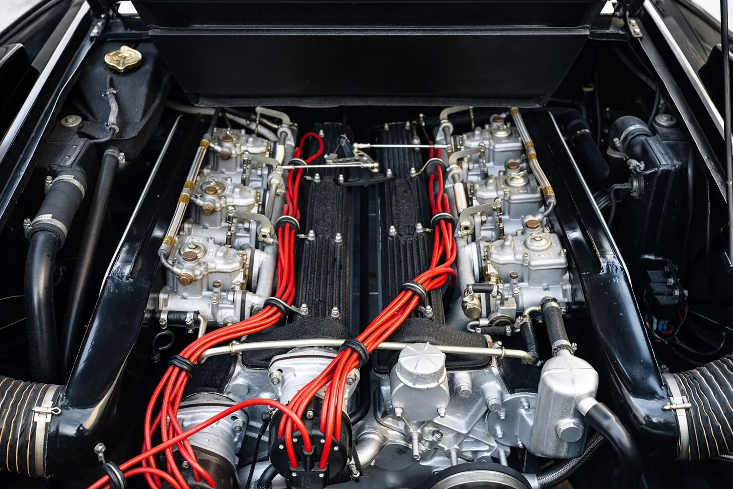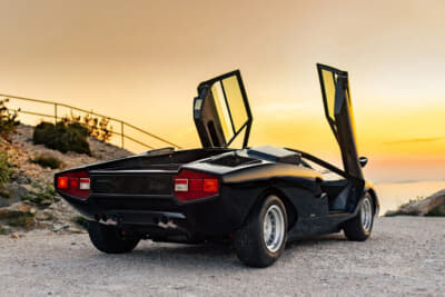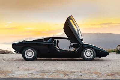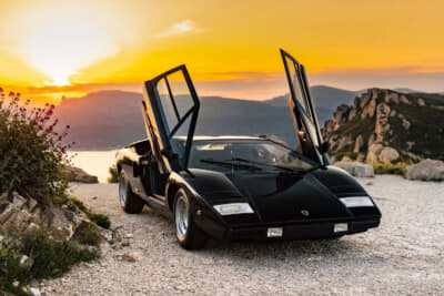 プロトタイプの「カウンタックLP500」が一般公開されたのは1971年のジュネーブ・ショーでのこと。1974年に登場した量産モデルのカウンタックLP400は、当初予定していた5Lユニットの導入をあきらめ、ランボルギーニ「ミウラ」に横置きで積まれていた排気量3929ccの水冷60度V型12気筒DOHCエンジンをミッドシップに縦置きで搭載した。