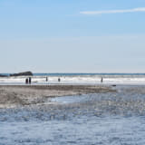 また、潮が引いた遠浅のビーチは、午後、太陽の熱で水蒸気が上がっていた。そのなかを行く人の姿は、まるで雲の上を歩いているようだった。