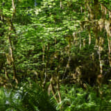 太平洋から吹きつける強い風のため、10月から翌年6月までの長い間、オリンピック半島西側は嵐の連続となる。嵐によってもたらされる大量の雨がコケ類やシダを育て、木をなぎ倒す。倒れた木は若い木が育つ格好の温床となり、立ったまま死んだ木は鳥や動物の住処となる。