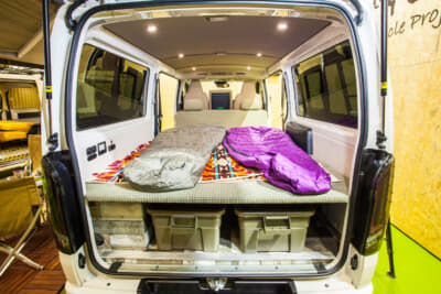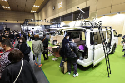 しかも、納期も早く、今回展示されていたハイエースくらいなら、オーダーのタイミングにもよるものの、約2~3週間くらいで納車可能とのこと。本格的なキャンピングカーとなると納車まで約2年待ちというご時世だけに、欲しいときにすぐ乗れるというのは、購入する側としては非常に嬉しいのではないでしょうか。