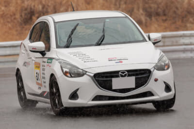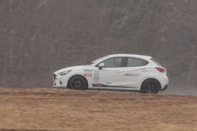低回転域からのトルクもあって高回転まで使えるので、ギヤセレクトでの迷いが少ないのも嬉しいポイント。雨の富士ショートコースではインフィールドは2速固定で回り切ることができました。下からエンジンが付いてきて、上までキッチリ回せて楽しいデミオのECUチューニング仕様は「これぞホットハッチだよね」と思わせてくれる乗り味です。