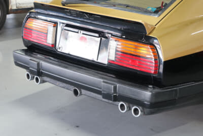 ブラックとシルバーでシックな感じに仕上がっていたマンハッタンカラー(ブラックとシルバーを入れ替えた逆マンハッタンカラーもありましたが)に対して、ブラック&ゴールドで塗り分けた“SUPER-Z”の2トーンカラーは、シックというよりも圧倒的な存在感を漂わせていたことが、今でも思い起こされてきます。またリアのサイドウインドウ部分にはルーバー状のパネルが貼られ、これもルックス上の大きな特徴となっています。