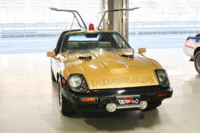 そんな「西部警察」シリーズで圧倒的な存在感を見せていた特殊車両の1台が「SUPER-Z」でした。これは亡くなった渡 哲也さんが演じていた主人公で警視庁西部警察署の捜査課、通称“大門軍団”を率いる大門圭介部長刑事の愛車。それまでの愛車だったKHGC211型スカイライン、通称“ジャパン”のハードトップ2000GTターボをベースにした“MACINE X”の後継車両として1982年9月にオンエアされた「西部警察PART-II」の第15話で登場していました。