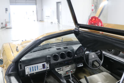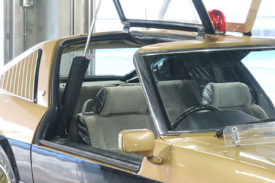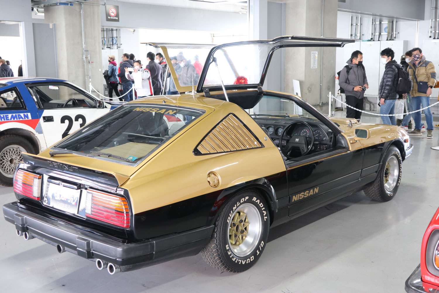 “SUPER-Z”のベースとなったのは、フェアレディZの2代目であるS130系の中で、1980年のマイナーチェンジに際して追加設定されたフェアレディ280ZのTバールーフ2by2(HGS130)です。最大の特徴は、ガルウイングドア……より正確に言うならドアをショルダー部分で分割して、上半分をルーフまで回り込んだ透明のアクリルパネルを使って、ガルウイング状に跳ね上げて開閉するタイプに変更していたことで、下半分は独自に開閉するタイプとなっていました。